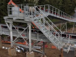 In der ersten Ausbaustufe dieser Anlage wurde eine komplette Förderlinie realisiert, die das Material effizient und zuverlässig transportiert. Dabei kommen durchdachte Konstruktionen und robuste Komponenten zum Einsatz: