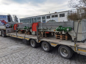 With a Belt width from 100 cm and a Centre distance with 3 metres three pre-assembled dosing belts are sent on their way to the customer.
